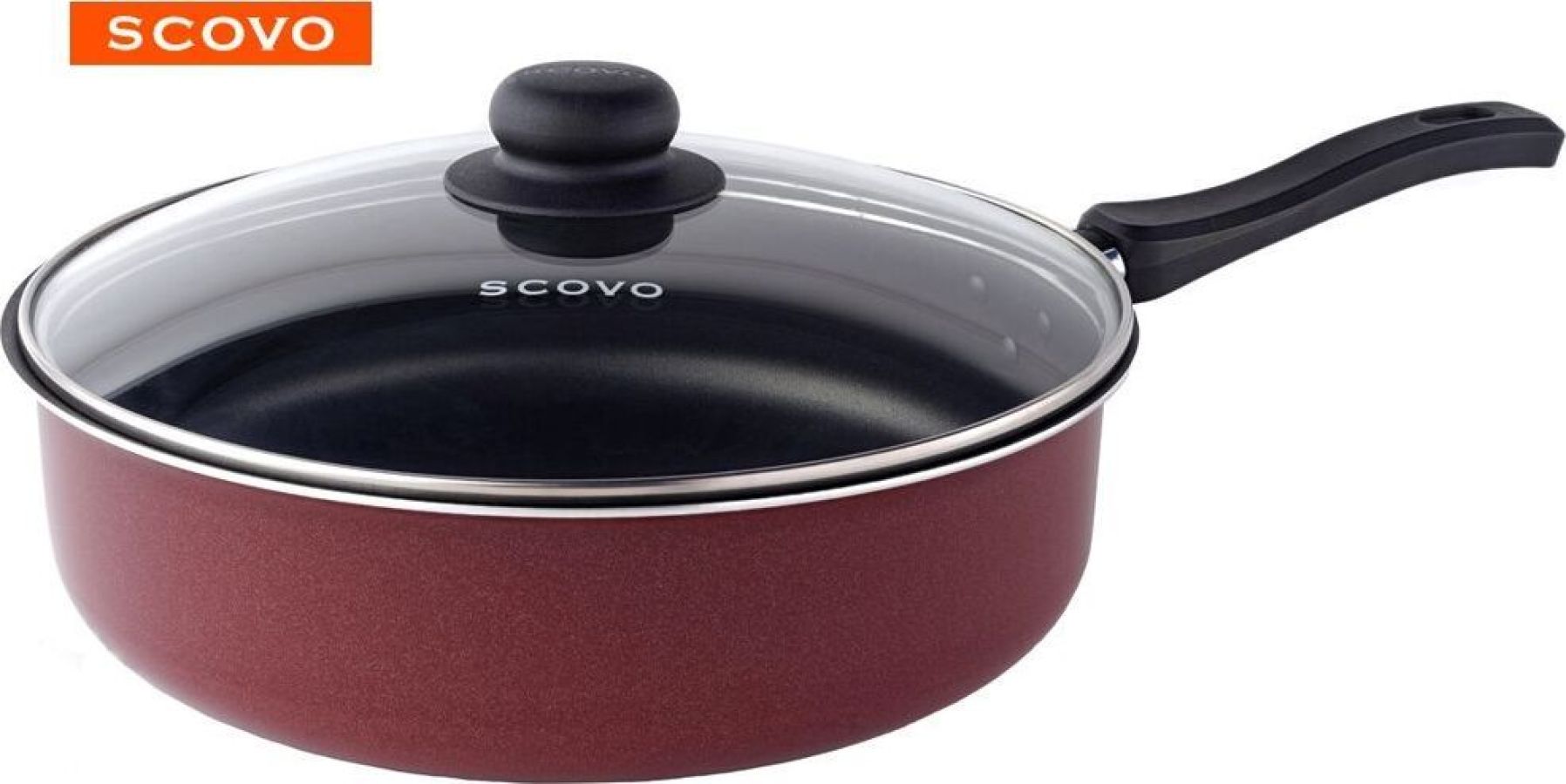 Сотейник Expert, диаметр 26см с антипригарным покрытием, со стеклянной крышкой. Крышка: Стекло с пароотводом и металлическим ободком. Материал: Штампованный алюминий. Цвет: Бордовый. Подходит для газовых плит, стеклокерамических плит и электроплит. Можно мыть в посудомоечной машине.