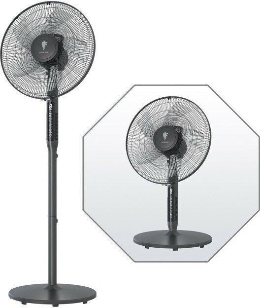 Универсальная конструкция 2 в 1 Диаметр 16" Настольный 50 см/Напольный 125 см 3 скорости Сенсорное управление LED дисплей Пульт ДУ Таймер от 1 до 9 часов Лучевая решётка Режим "Normal" Режим "Natural" имитация бриза Режим "Sleep" Регулировка наклона Функция поворота Устойчивая подставка Мощность 55 Вт Гарантия 2 года