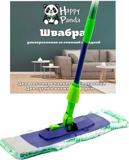 Швабра Размеры: длина ручки - 120 см; размер платформы: 43х13 см, тип ручки: телескопическая прорезиненная; материал: пластик, насадка микрофибра, вес насадки - 90 гр. Швабра предназначена для сухой и влажной уборки гладких поверхностей, таких как пол, стены и потолок. Подходит для всех типов напольных покрытий (паркет, ламинат, керамика, линолеум, мрамор). Специально разработанная конструкция швабры помогает распределить давление на всю платформу. Платформа швабры в месте крепления к рукоятке имеет шарнирную конструкцию, благодаря чему швабру можно удерживать под любым углом к полу. Швабра имеет усиленную конструкцию поворотного соединения: обеспечивает долгий срок службы и позволяет добраться до труднодоступных мест за счет мобильности в движении.