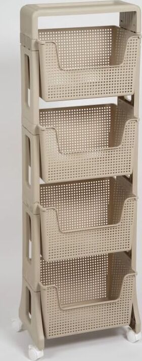 Материал: полипропилен. Цвет: латте. Количество полок: 4 шт. Наличие колес: есть. Ширина: 395 мм. Высота: 1228 мм. Глубина: 260 мм.
