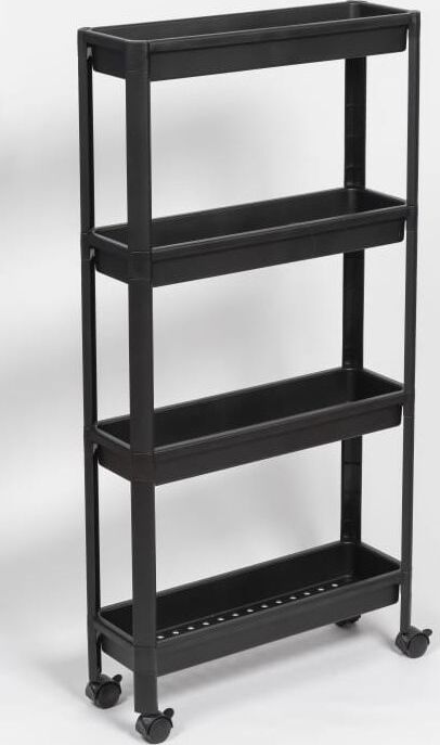 Материал: полипропилен. Цвет: черный. Количество полок: 4 шт. Наличие колес: есть. Ширина: 175 мм. Высота: 1055 мм. Глубина: 530 мм.