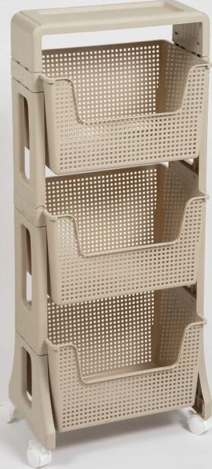 Материал: полипропилен. Цвет: латте. Количество полок: 3 шт. Наличие колес: есть. Ширина: 395 мм. Высота: 943 мм. Глубина: 260 мм.