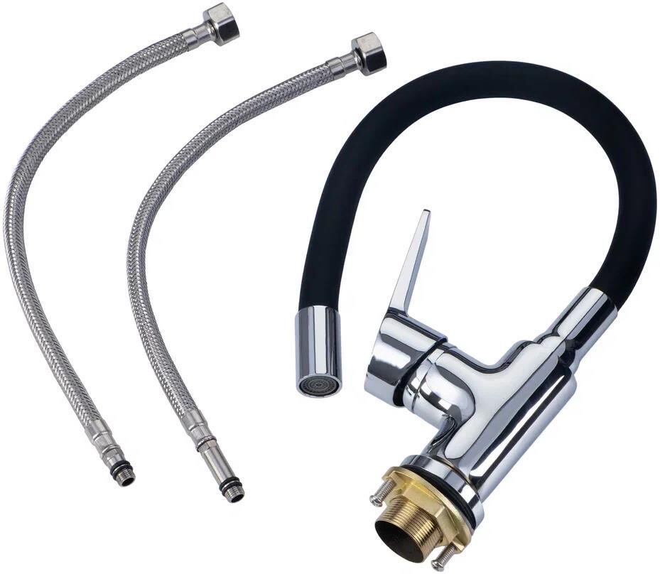 Смеситель для кухни с изливом черного цвета, однорычажный, с корпусом из латуни и креплением на гайке, присоединительный размер М32х1,5. Лаконичный дизайн Надежные и безопасные материалы Экономный расход воды за счет аэратора Простота монтажа и эксплуатации. Модель L1006MGВ Присоединительный размер М32×1,5 Длина излива, см 22,5 Размеры изделия, см 35,3х26,2х5 Материал корпуса Латунь Вес, кг 1,14.
