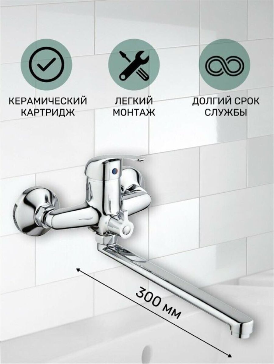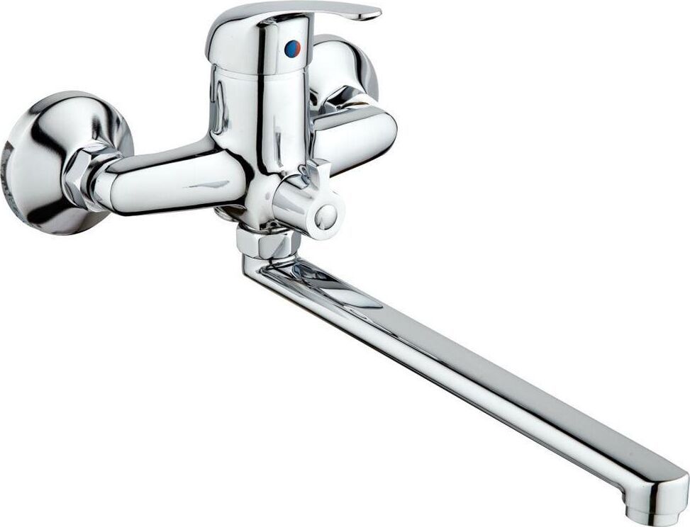 Смеситель универсальный с плоским прямым изливом и переключателем для душа - Покрытие корпуса: хром - Картридж керамический 40 мм - Шланг длины 1,5 м - С поворотным изливом 300 мм - В комплекте с лейкой