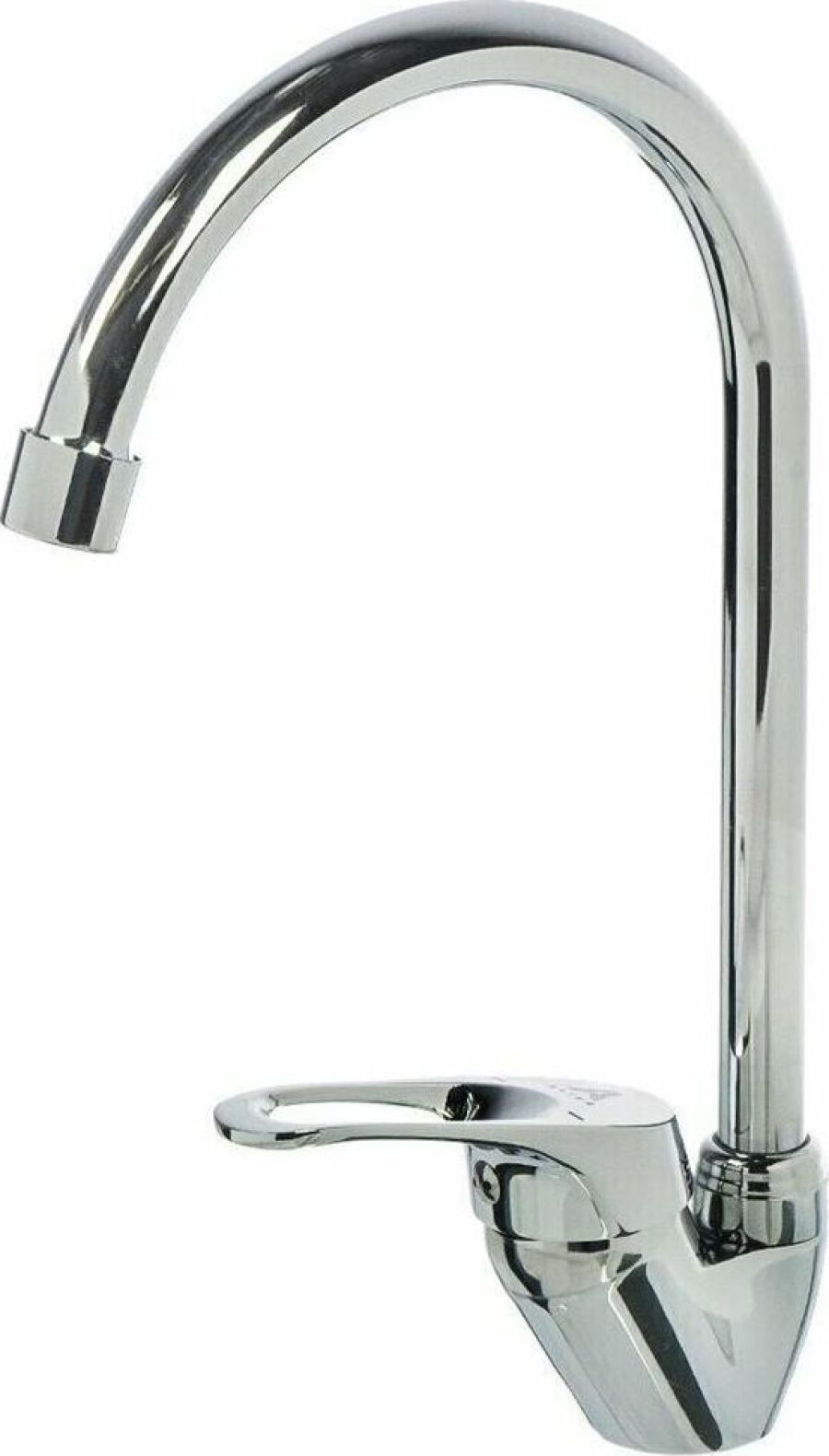 Смеситель для кухни с высоким изливом - Покрытие корпуса: хром - Картридж керамический 35 мм - Гибкая подводка 1/2" дюйма (400 мм) - С поворотным изливом
