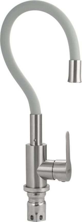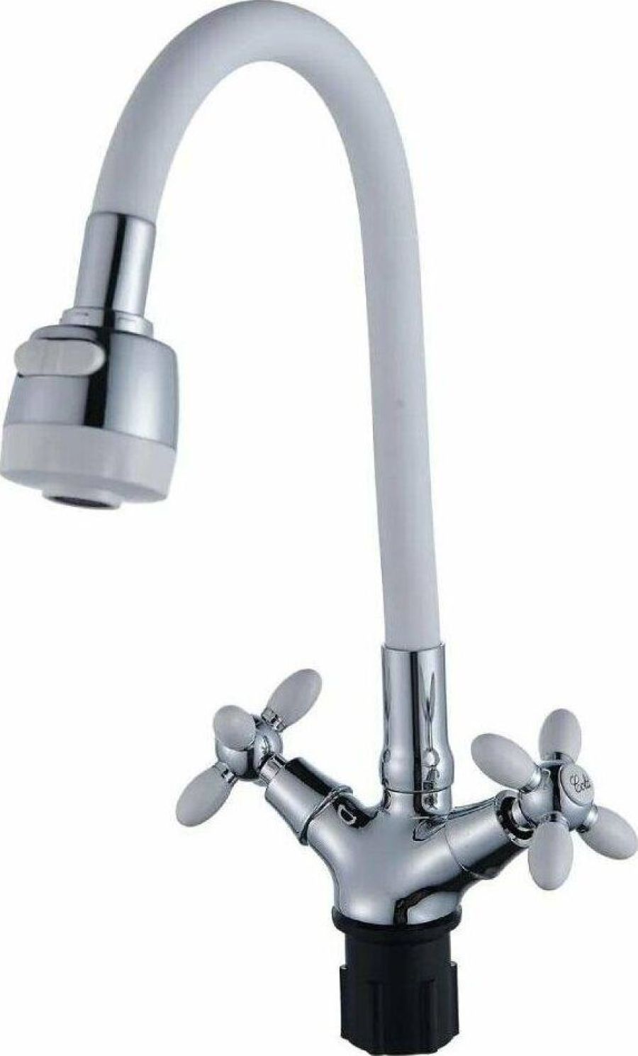 Смеситель для кухни с гибким изливом (крепление гайка) - Покрытие корпуса: хром - Цвет излива: белый - Кран-букса латунная с керамическими пластинами (угол поворота 90 градусов) - Гибкая подводка 1/2" дюйма (400 мм)