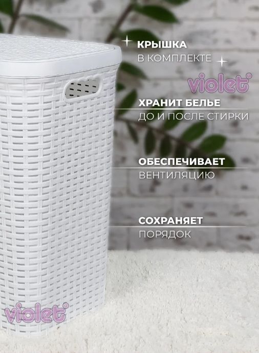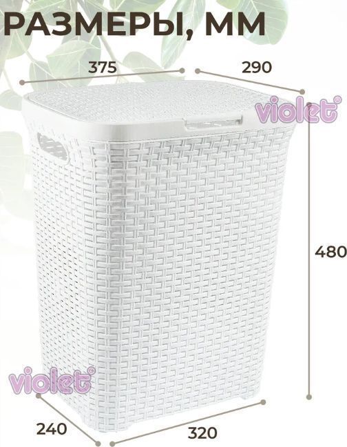 Корзина для хранения белья с крышкой Ротанг, объем 40 литров, выполнена из прочного пластика и станет удобным контейнером органайзером для хранения вещей и одежды в стирку. С её помощью вы легко организуете любое пространство и наведете порядок в ванной комнате. Пластик не боится сырости, его легко содержать в чистоте, достаточно протереть влажной тряпкой. Такая корзина станет удобным и эстетичным дополнением в вашей квартире или доме и подчеркнет вкус и индивидуальность! Размеры изделия 37,5 х 29 х 48 см, цвет бельевой корзины - белый.