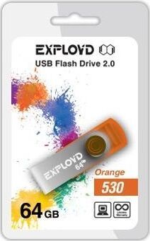 Объем - 64ГБ. Интерфейс подключения - USB2.0. Скорость чтения данных - 15МБ/с. Скорость записи данных - 8МБ/с. Материал корпуса - пластик, металл. Цвет - оранжевый.