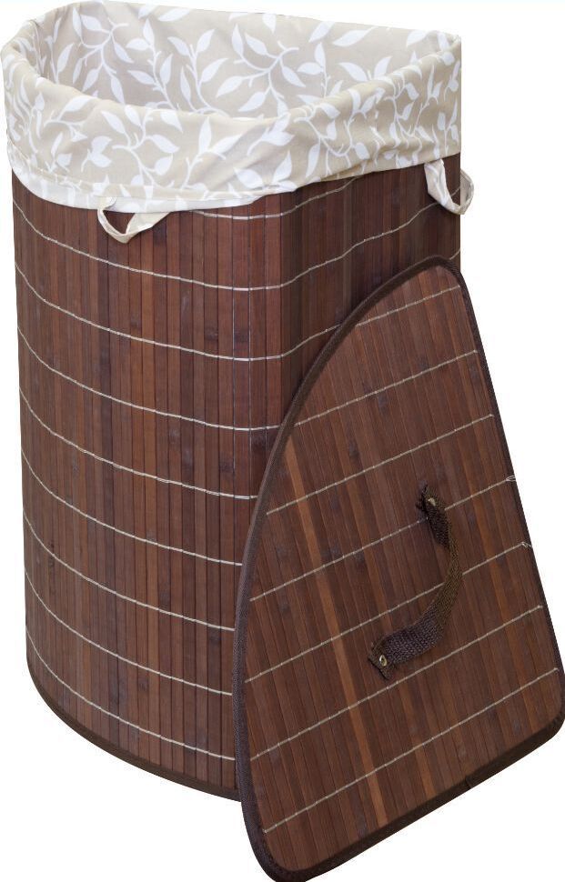 Корзина для белья BLB-07-D, бамбук, цвет: тёмный, размер: 35*35*50см Корзина для белья складная, угловая, цвет — натуральный бамбук (темный). Материал: бамбук, поликоттон, элементы из металла, нейлон Размеры изделия 35*35*50см Объем 48 литров. Продается в сложенном виде, упаковка ПВХ пакет с крючком и цветным вкладышем. Размеры в сложенном виде: 50*38,5*2,5 см Обработана антисептиком, окрашена