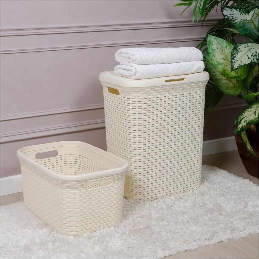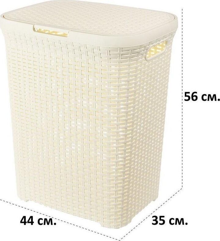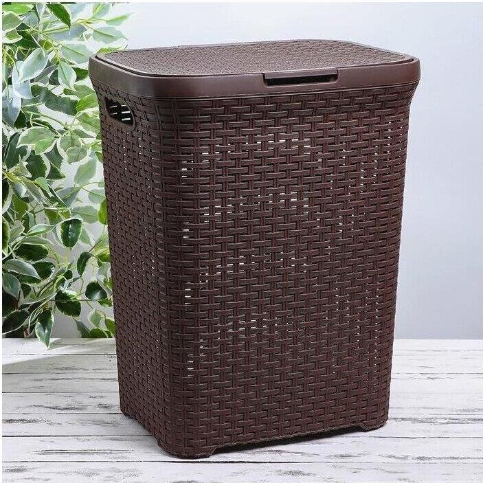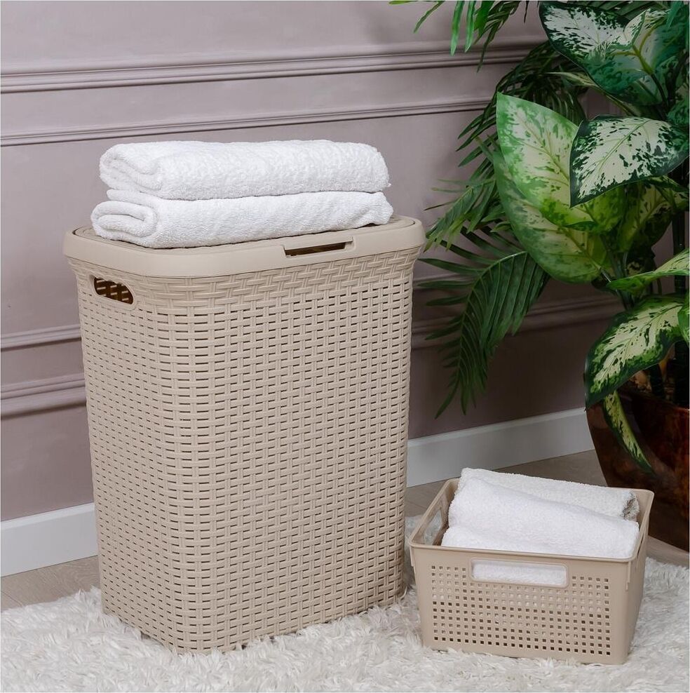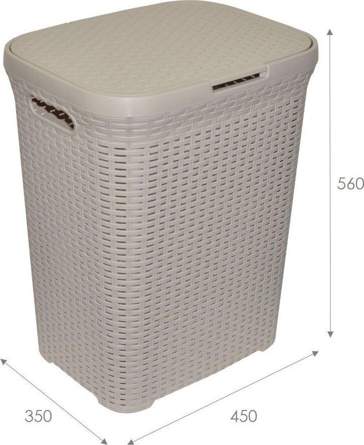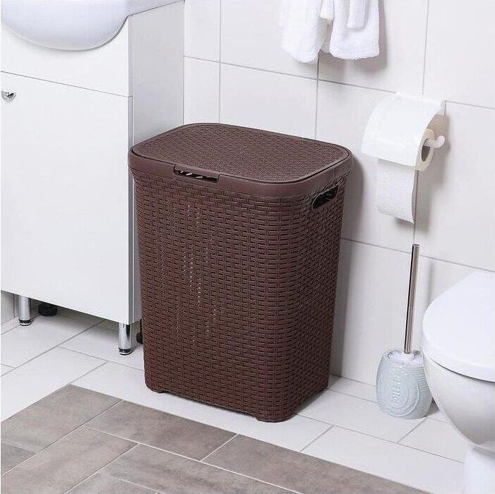 Емкость для накопления грязного белья перед стиркой. В объеме 60л комфортна для использования в семье на несколько человек. Крышка закроет содержимое от взглядов и послужит препятствием для распространения возможных посторонних запахов. Округлая форма удобна для размещения корзины в небольших помещениях (ванных комнатах, кладовых и гардеробных). Текстура с имитацией натурального плетения «Ротанг» привнесет уют в ваш интерьер и придаст индивидуальность.