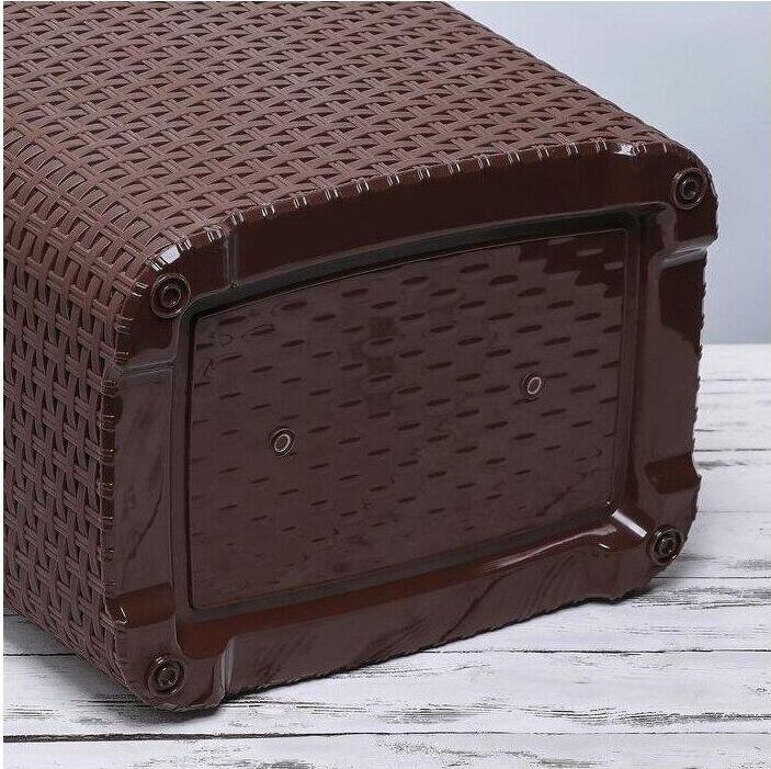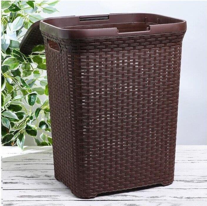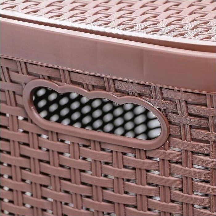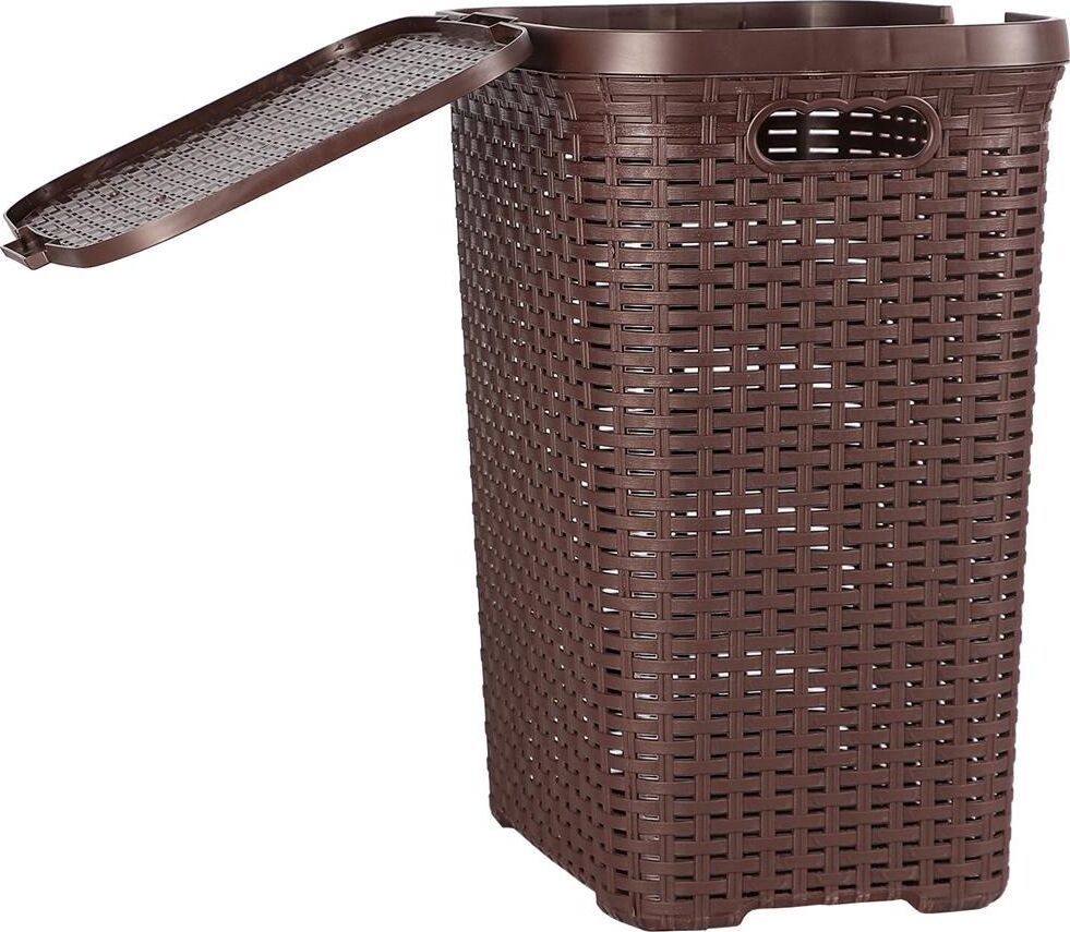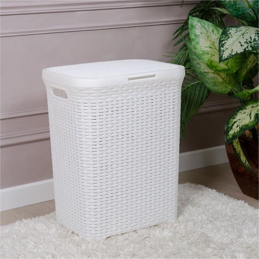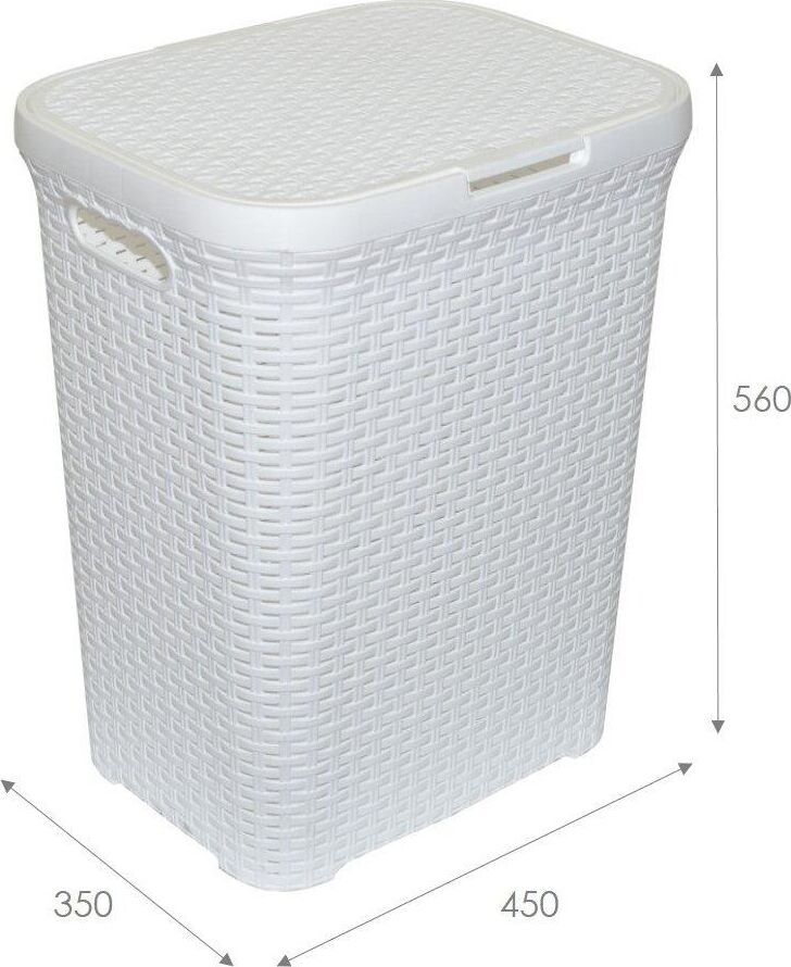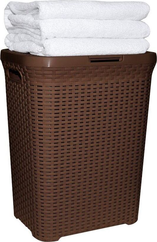Емкость для накопления грязного белья перед стиркой. В объеме 60л комфортна для использования в семье на несколько человек. Крышка закроет содержимое от взглядов и послужит препятствием для распространения возможных посторонних запахов. Округлая форма удобна для размещения корзины в небольших помещениях (ванных комнатах, кладовых и гардеробных). Текстура с имитацией натурального плетения «Ротанг» привнесет уют в ваш интерьер и придаст индивидуальность.