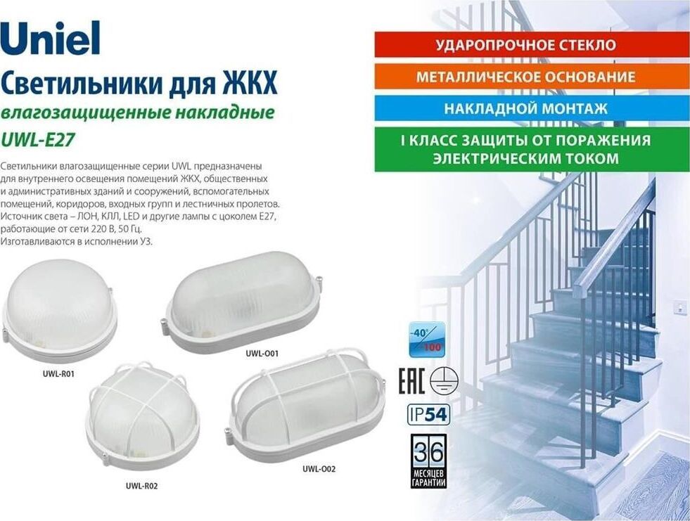 ЭЛЕКТРИКА UNIEL (UL-00006773) UWL-O01 100W/E27 IP54 WHITE Овал