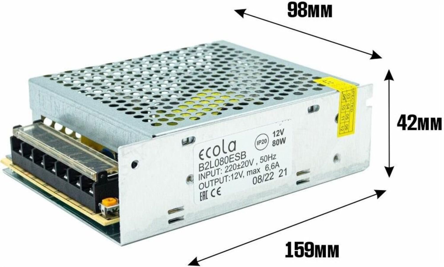 ECOLA LED strip Power Supply 80W 220V-12V IP20 блок питания для светодиодной ленты Степень защиты IP20 Мощность 80W Напряжение входное 220V Напряжение выход 12V