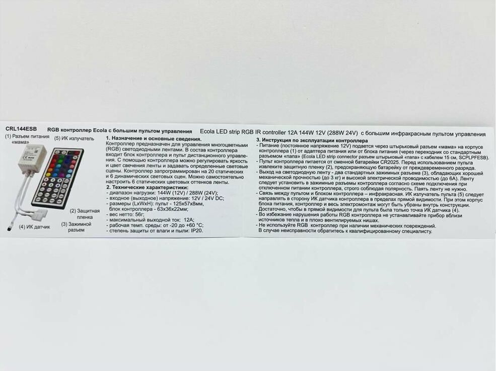 RGB IR controller 144W 12V 12A с большим инфракрасным пультом управления