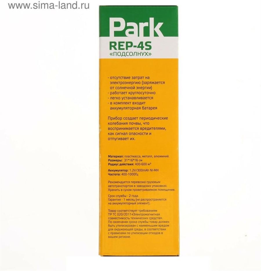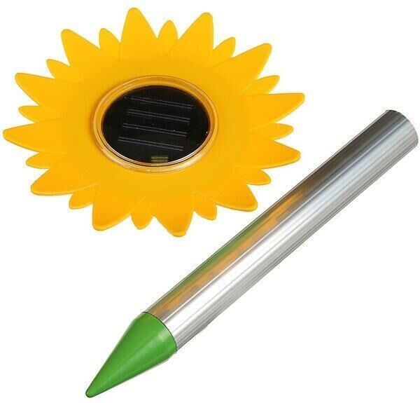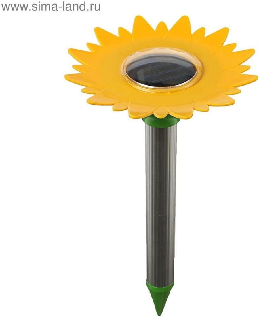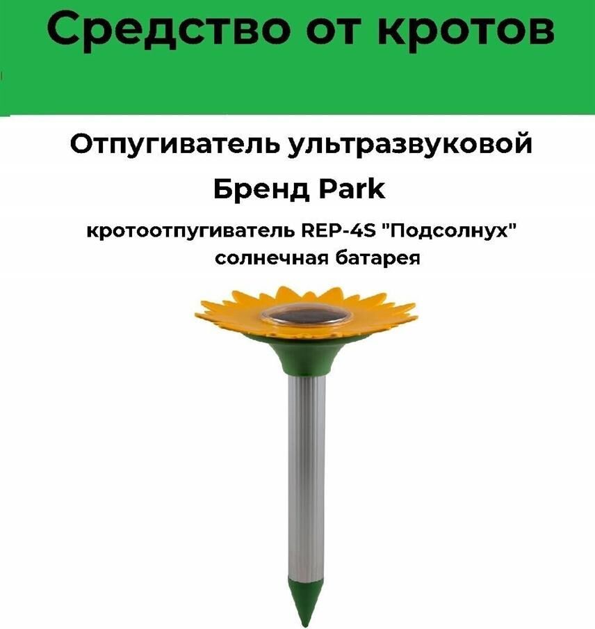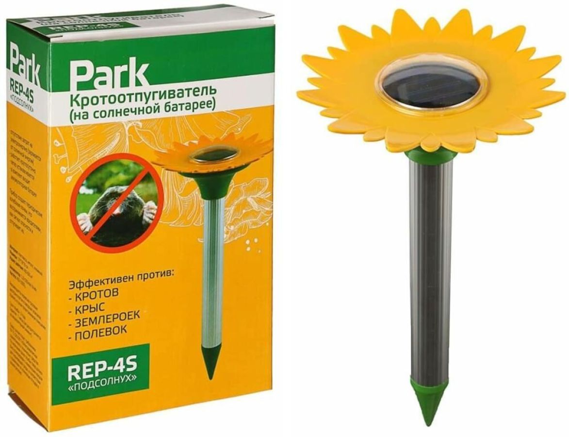 Кротоотпугиватель REP-4S "Подсолнух". Прибор создает периодические колебания в почве, что воспринимается вредителями, как сигнал опасности и отпугивает их. Материал: пластик, металл, алюминий. Размеры: 31* 17см. Размер солнечной панели: 6*6 см. Радиус действия 400-600м3. Преимущества: - отсутствие затрат на электроэнергию (заряжается от солнечной энергии), - легко устанавливается, - работает круглосуточно, - в комплект входит аккумуляторная батарея. Эффективен против: КРОТОВ, КРЫС, ЗЕМЛЕРОЕК, ПОЛЕВОК.