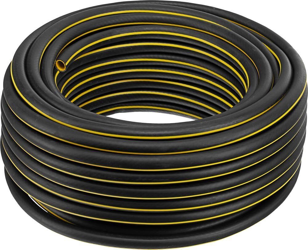 Шланг поливочный армированный 3-слойный ТЭП (термоэластопласт) Palisad 67111 диаметром 1/2? и длиной 35 м, аграрный, пригодится владельцам дачных участков и сотрудникам коммунальных служб для создания системы орошения. Он облегчает труд пользователя, позволяя быстро восполнять водный баланс почвы. Длины 35 м достаточно для орошения небольших участков.ПреимуществаПрочность и долговечность — шланг из ТЭП, армированный суперпрочной полиэстерной нитью плотностью 93 ТЭКС, устойчив к повышенным нагрузкам на изгиб, скручиваниям и обладает высокой морозоустойчивостью.Высокий ресурс — армирующая нить с инновационным плетением обеспечивает равномерное распределение нагрузки.Всепогодность — температурный диапазон эксплуатации от -30 до +70°С.Устойчивость к УФ-лучам и механическим воздействиям — на поверхность шланга нанесено защитное покрытие.Высокие эксплуатационные характеристики — толщина стенок составляет 2,5 мм, поэтому шланг выдерживает разрывные нагрузки до 8 бар.Экологичность — термоэластопласт и армирующая нить не содержат вредных веществ.