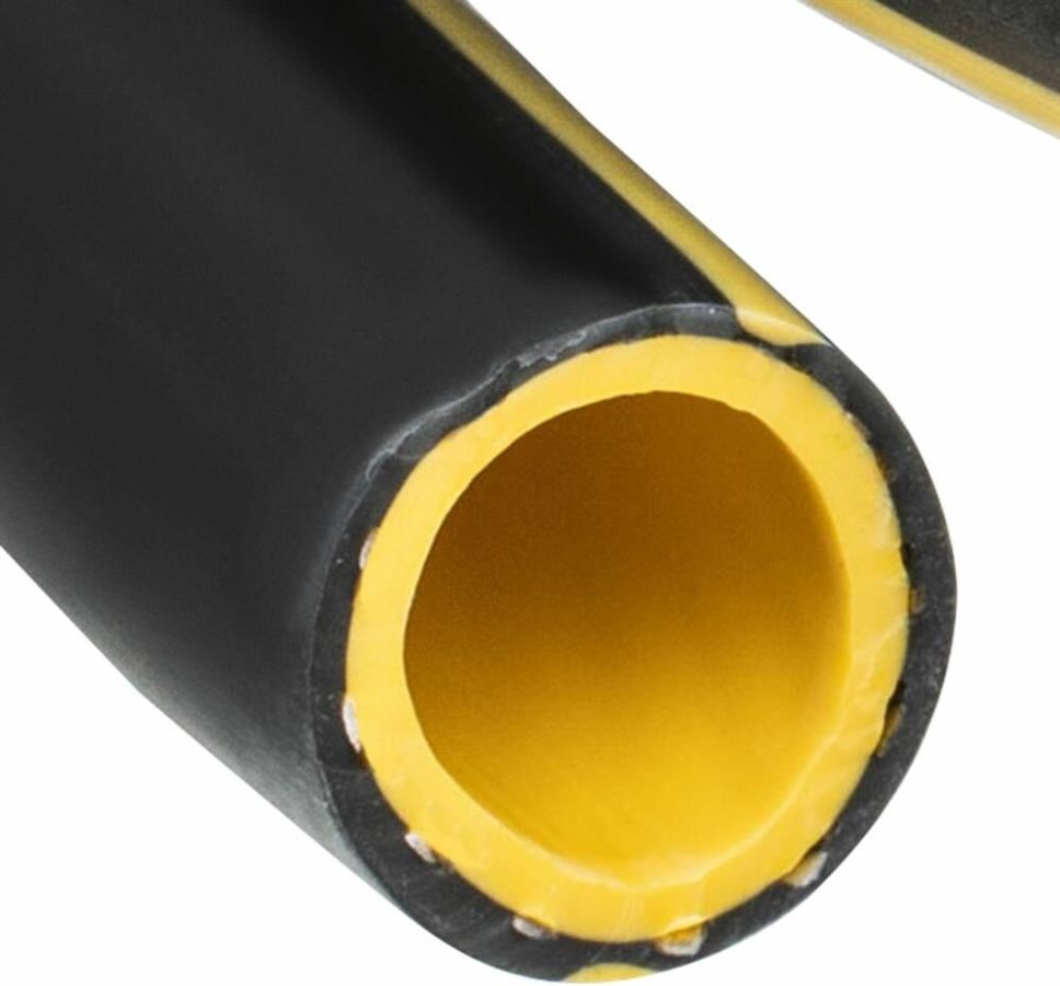 Шланг поливочный армированный 3-слойный ТЭП (термоэластопласт) Palisad 67110 диаметром 1/2 и длиной 20 м, аграрный, пригодится владельцам дачных участков и сотрудникам коммунальных служб для создания системы орошения. Он облегчает труд пользователя, позволяя быстро восполнять водный баланс почвы. Длины 20 м достаточно для орошения небольших участков.ПреимуществаПрочность и долговечность — шланг из ТЭП, армированный суперпрочной полиэстерной нитью плотностью 93 ТЭКС, устойчив к повышенным нагрузкам на изгиб, скручиваниям и обладает высокой морозоустойчивостью.Высокий ресурс — армирующая нить с инновационным плетением обеспечивает равномерное распределение нагрузки.Всепогодность — температурный диапазон эксплуатации от -30 до +70°С.Устойчивость к УФ-лучам и механическим воздействиям — на поверхность шланга нанесено защитное покрытие.Высокие эксплуатационные характеристики — толщина стенок составляет 2,5 мм, поэтому шланг выдерживает разрывные нагрузки до 8 бар.Экологичность — термоэласт