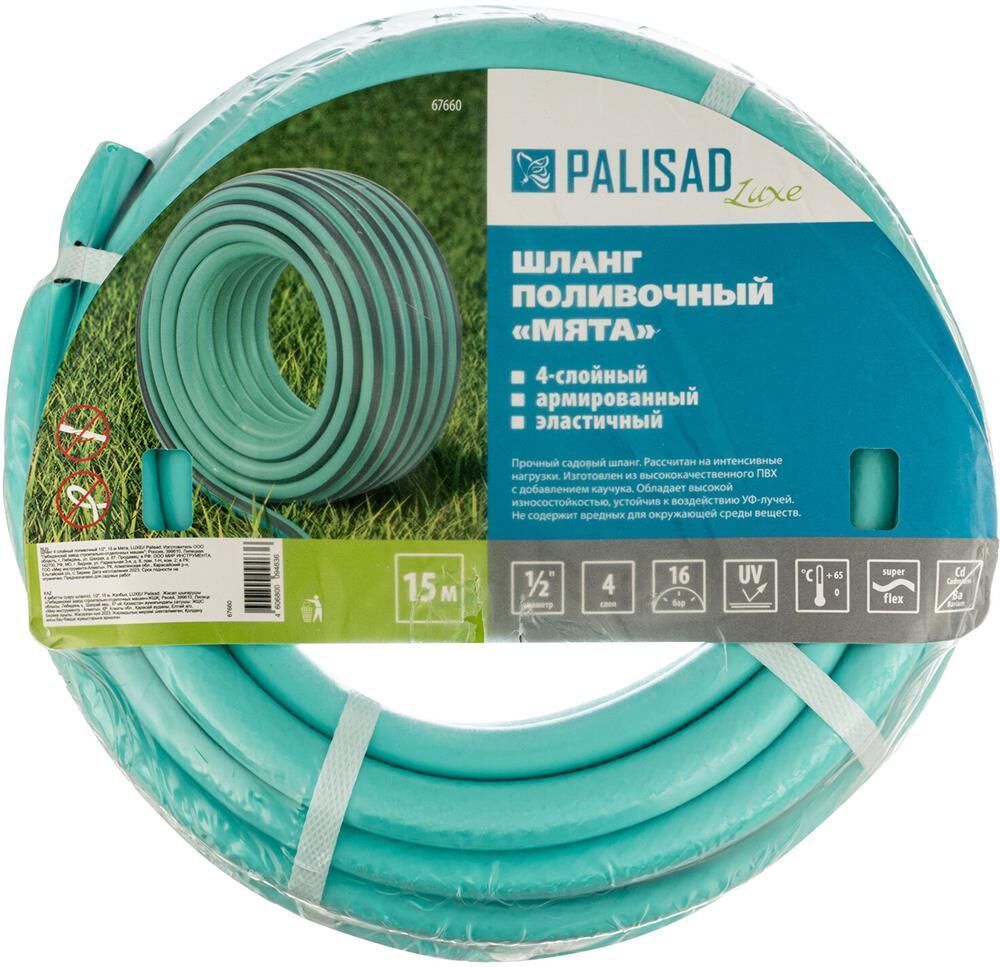 4-слойный армированный поливочный шланг Palisad LUXE Мята 67660 длиной 15 м и диаметром 1/2 дюйма предназначен для повседневного использования. С его помощью можно полить сад, огород или газон, поэтому изделие пригодится дачникам. Шланг рассчитан на использование в поливочных системах Palisad и Palisad LUXE.ПреимуществаШланг прослужит долго благодаря поливинилхлориду (ПВХ) наивысшего качества, из которого он выполнен.Армирующий слой с полиэстерной нитью является залогом надежности и прочности поливочного шланга.Инновационная армирующая нить со специально подобранными параметрами угла наклона и шага позволяет равномерно распределять нагрузку на шланг.Покрытие Soft Touch защищает изделие от мелких повреждений и УФ-лучей.Шланг отличается особой эластичностью, поэтому отлично держит и возвращает форму.ПВХ не выделяет вредных токсинов в окружающую среду, поэтому безопасен для экологии.