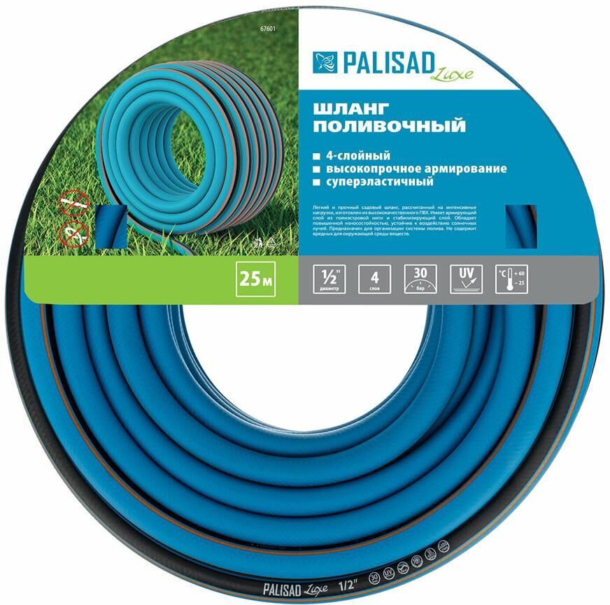 Армированный поливочный шланг Palisad LUXE 67601 длиной 25 м и диаметром 1/2"" облегчает уход за растениями, избавляя от необходимости пользоваться лейкой. Совместим с любыми системами полива ТМ Palisad.ПреимуществаУстойчивость к интенсивным нагрузкам — шланг армирован суперпрочной полиэстерной нитью с точно рассчитанным шагом и углом наклона.Долговечность — защитное покрытие «Soft Touch» предотвращает механические повреждения и разрушение от воздействия УФ-лучей.Высокие эксплуатационные свойства — стенки толщиной 2,3 мм выдерживают давление до 30 бар.Эластичность — шланг легко принимает исходную форму после сгибаний.Экологичность — высококачественный ПВХ (поливинилхлорид) не содержит вредных веществ.