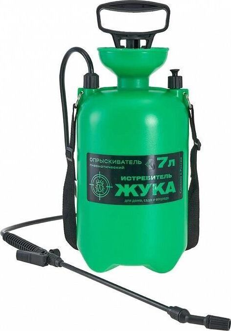 Комплектация: с ремнем -Пластиковая удочка с насадкой -распылителем Регулируемая насадка -распылитель Ремень для переноски, Опрыскиватель Истребитель жука 10л