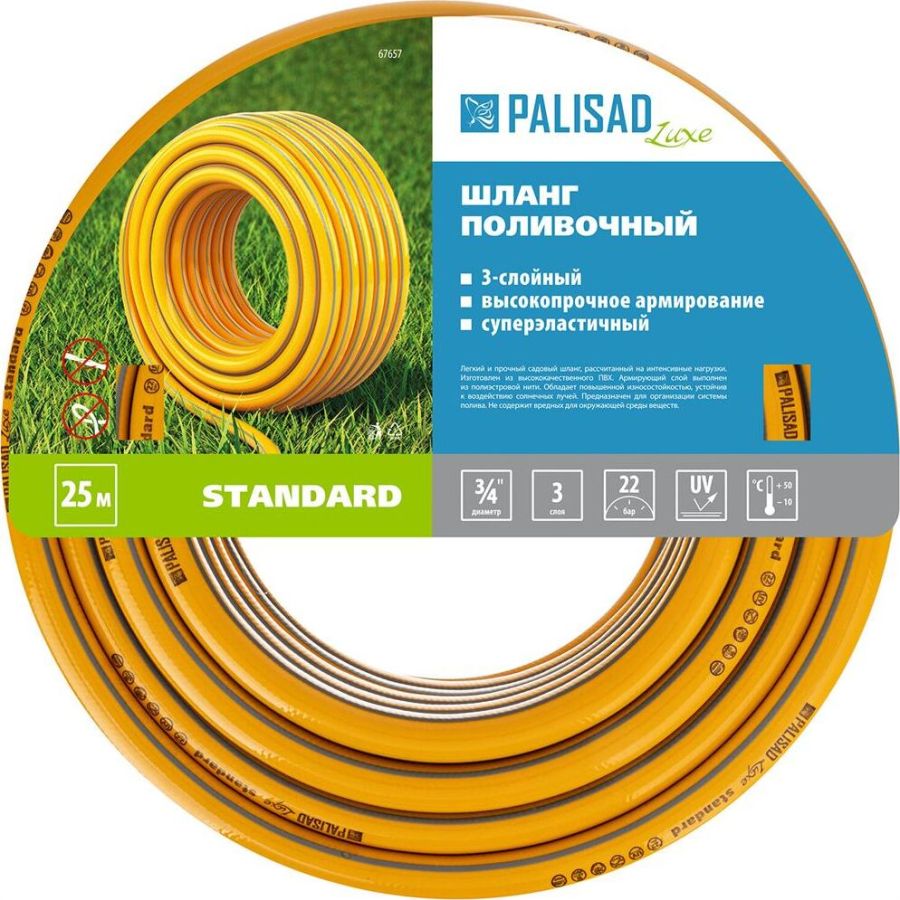 Шланг поливочный армированный 3 слойный "STANDARD" 3/4", 25м Предназначен для орошения почвы на садовых и парковых участках. Изготовлен из ПВХ cамого высокого качества. Благодаря армированию полиэстеровой нитью не перегибается и не перекручивается. Устойчив к УФ-излучению. Рассчитан на эксплуатацию в условиях интенсивной нагрузки. Устойчивы к повреждениям. Совместим со всеми элементами системы полива Palisad Luxe и Palisad.