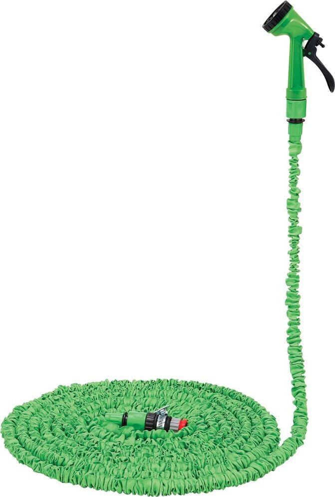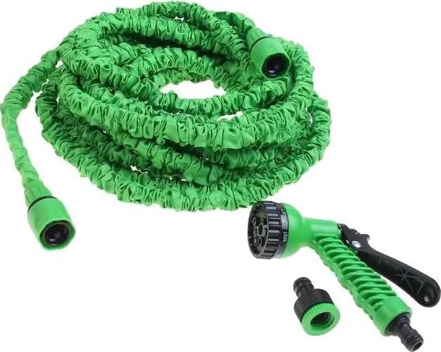 Специальный растяжной шланг увеличивается в длину в 3 раза. Диаметр 1/2". Изготовлен из сверхпрочного латекса, благодаря чему дольше сохраняет форму, выдерживает практически любое натяжение Состав набора: шланг растяжной (номинальная длина – 2,5 м, максимальная растяжимость - 7,5 м) с двумя соединителями. пистолет для полива (7 режимов полива) адаптер с переходником 1/2 и 3/4 материал: ШЛАНГ - ЛАТЕКС, пластик, полиэстер, металл