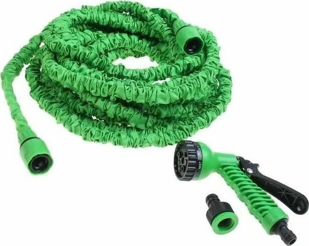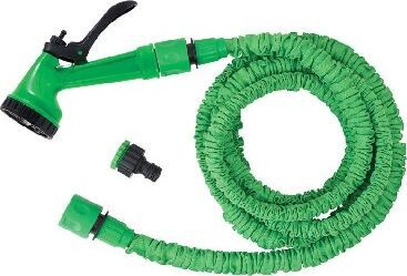 Специальный растяжной шланг увеличивается в длину в 3 раза. Диаметр 1/2". Изготовлен из сверхпрочного латекса, благодаря чему дольше сохраняет форму, выдерживает практически любое натяжение Состав набора: шланг растяжной (номинальная длина – 2,5 м, максимальная растяжимость - 7,5 м) с двумя соединителями. пистолет для полива (7 режимов полива) адаптер с переходником 1/2 и 3/4 материал: ШЛАНГ -ЛАТЕКС, пластик, полиэстер, металл