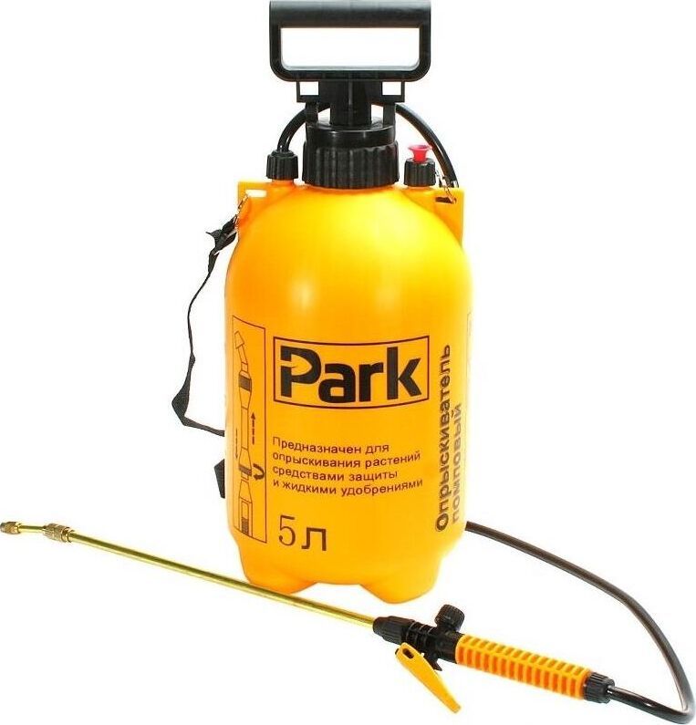 Опрыскиватель PARK 5л фибергласс удочка. Фибергласс удочка из 2 частей по 30 см, общая длина удочки - 84 см. Регулируемый ремень. Удобная ручка штанги. Легкое и простое обслуживание. Материал: пластик, фибергласс. Клапан стравливания давления. Предназначен для дезинфекционных работ и ухода за растениями в овощеводстве, садоводстве, цветоводстве. Применяется для обработки химическими препаратами для защиты растений, пестицидами, жидкими удобрениями, чистой водой.