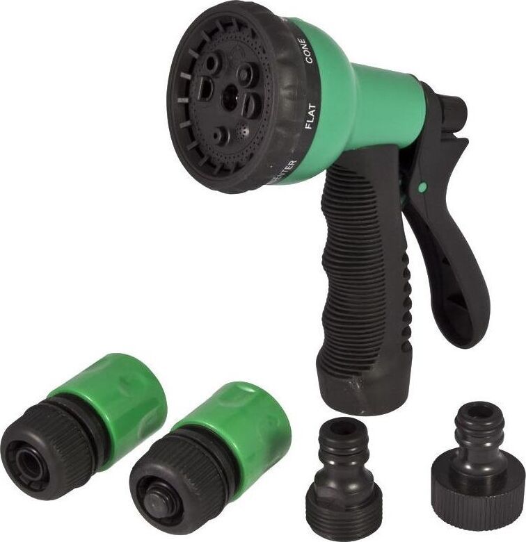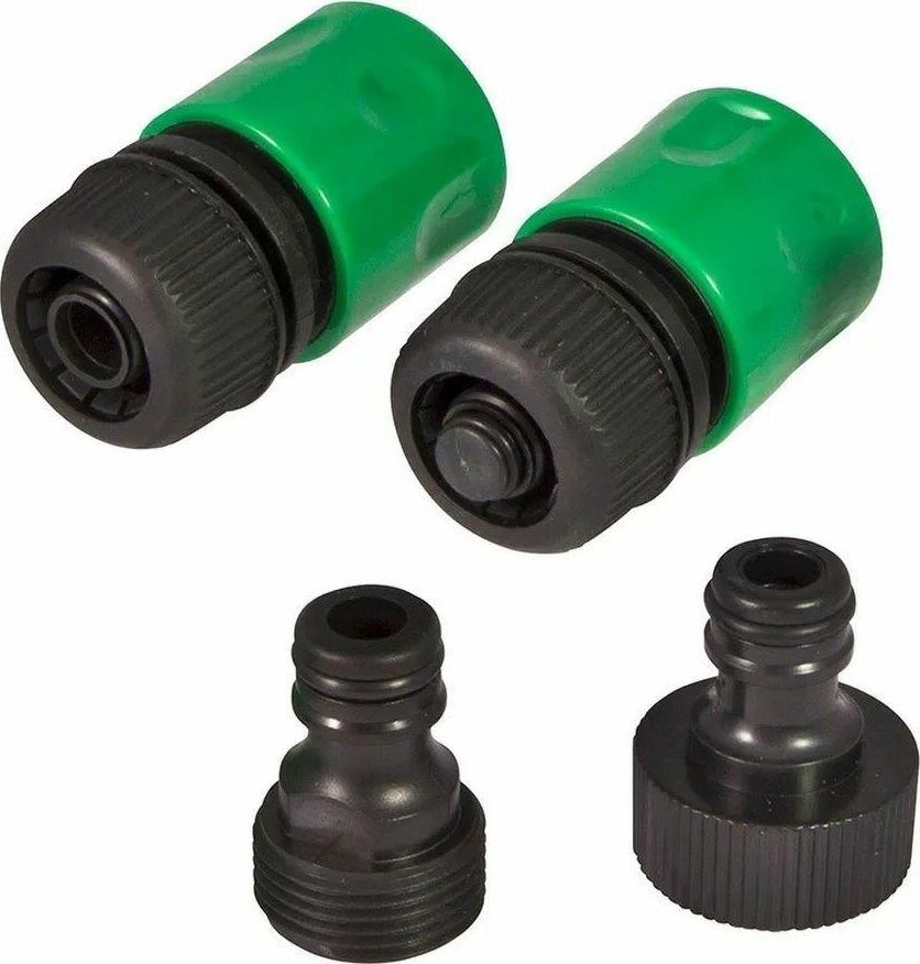 Комплектация: соединитель 1/2" с акваспотом - 1 шт, пистолет для полива - 1 шт, соединитель 1/2" - 1 шт, адаптер 3/4" с внутренней резьбой - 1 шт, адаптер 3/4" с внешней резьбой