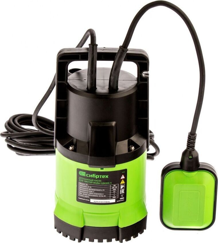 Дренажный насос для чистой воды СИБРТЕХ СДН300-5 97261 используется для поливочных работ, откачки воды из помещений, а также для перекачивания жидких бытовых отходов. Для удобной переноски предусмотрена удобная ручка. Поплавковый выключатель защищает насос от работы всухую. Вес нетто, кг 2,9. Высота подъема, м 6,5. Габариты без упаковки, мм 190х160х290. Глубина погружения, м 7. Мощность, Вт 300. Производительность, л/мин 108,3. Тип дренажный для чистой воды. Трубное соединение, дюйм внутренняя G1 1/4. Длина кабеля, м 7. Вид погружной. Защита от сухого хода поплавковый выключатель. Мах температура жидкости, °С 35. Остаточный уровень воды, мм 40. Соединитель в комплекте внешняя G1 1/4, елочка 1 1/4, елочка 1. Материал крыльчатки пластик. Для повышения давления нет. Давление, атм 0.65.