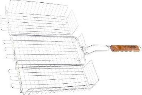 Решетка для барбекю универсальная Материал: решетка - хромированная сталь,деревянная ручка Размер: 35 x 25 x 1.5см,Общая длина: 60 см Диаметр проволоки: 3,8 мм, 2,5 мм, 1,5 мм,