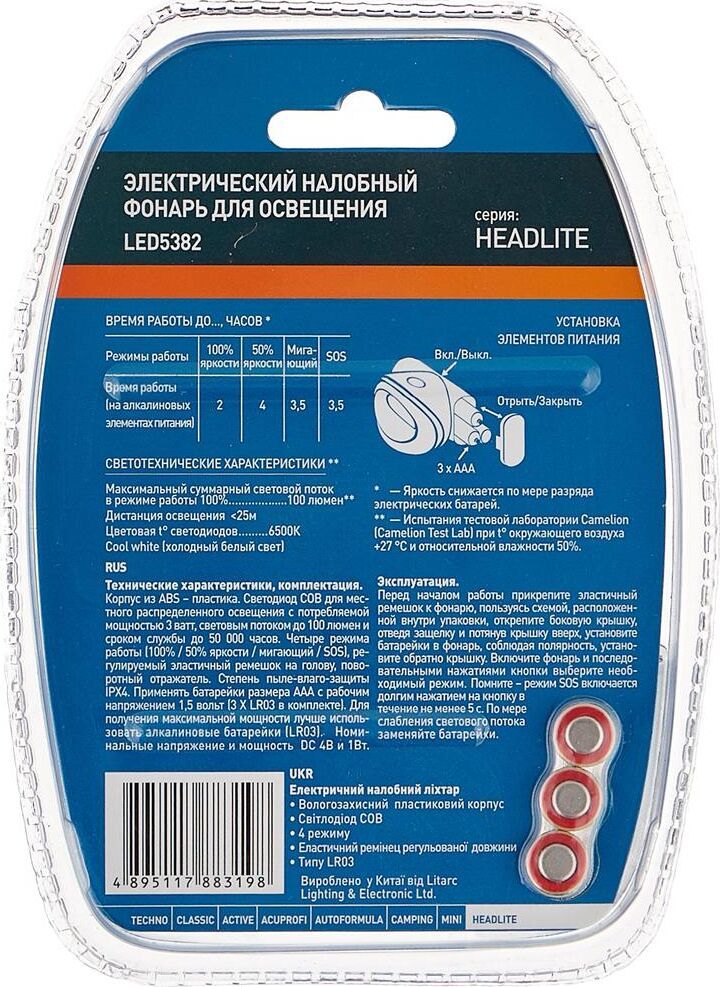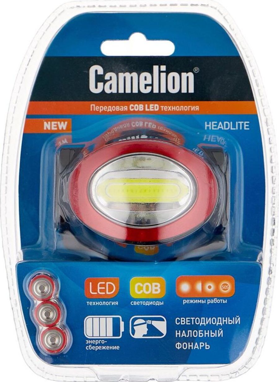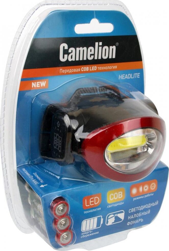 Camelion LED5382 (фонарь налобн, черн., COB, 4 реж, 3XLR03 в компл, пласт, откр. блист)