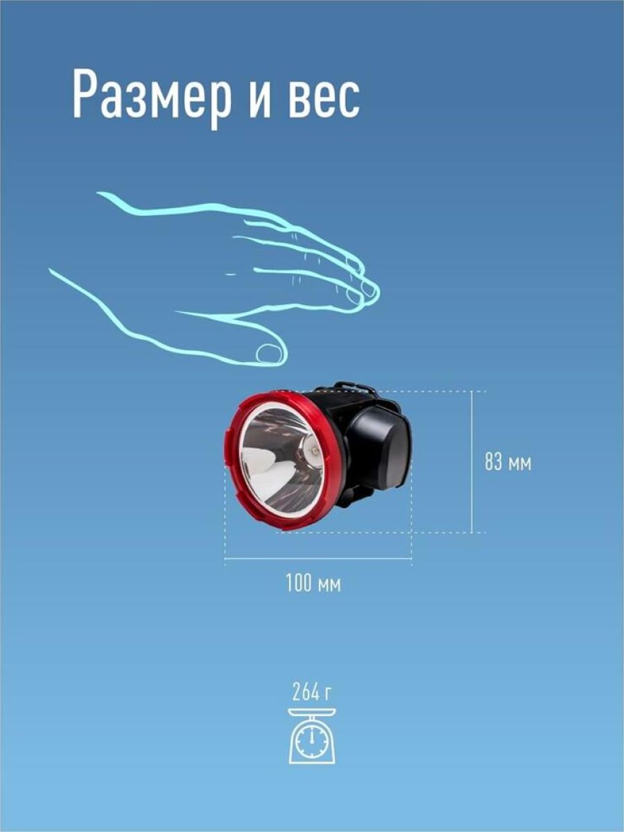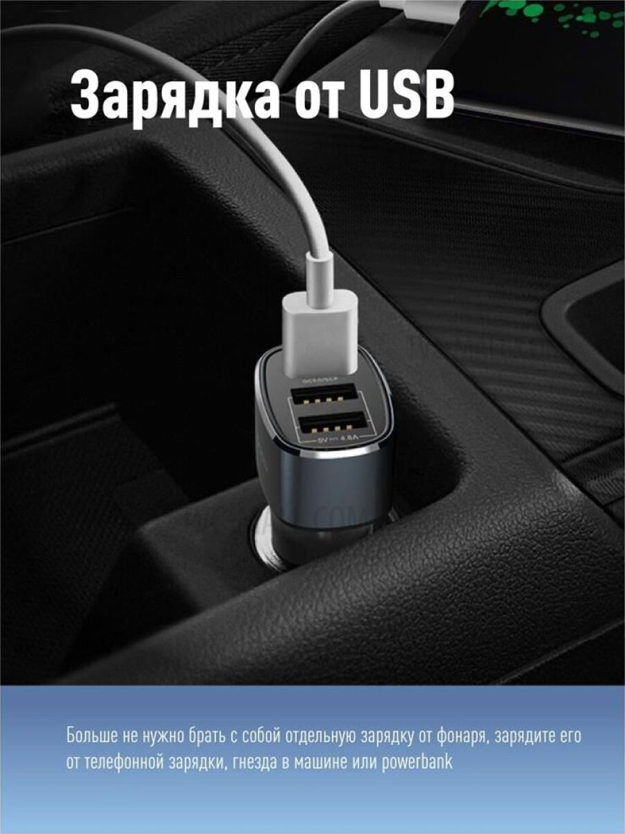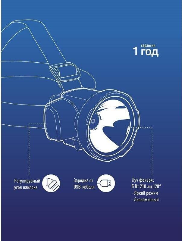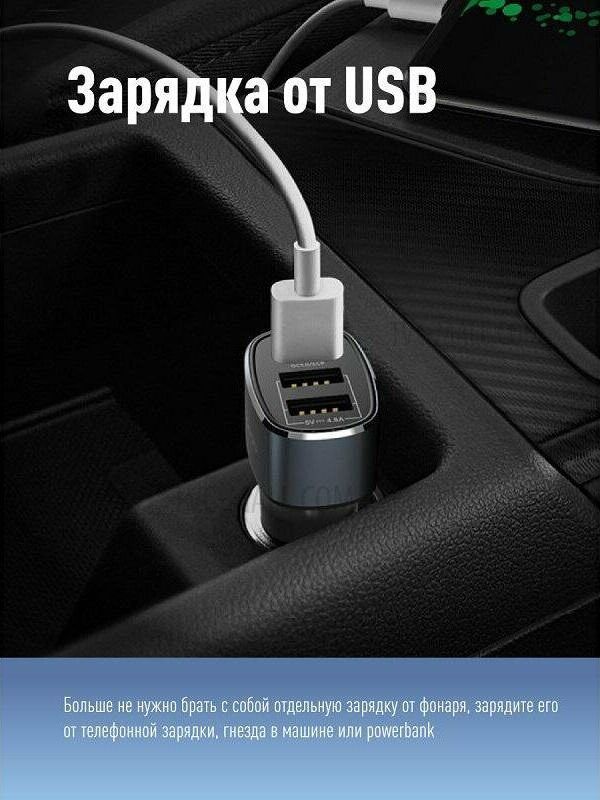 LED 5W 220лм 2режима, аккум.2Ah,зарядка от USB,провод в комплекте
