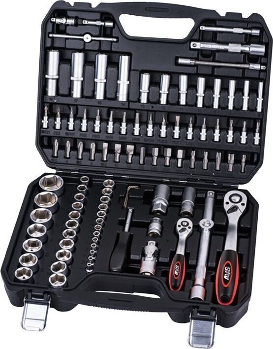 Набор инструмента оснащен прочными и надежными изделиями, которые подойдут для ремонта дома, на даче и для обслуживания вашего автомобиля. Комплект состоит из 94 предметов, упакованных в кейс для надежного хранения и безопасной транспортировки. Рабочие части инструментов выполнены из хромованадиевой стали и обладают комфортными для удержания рукоятками. Материал – хромованадиевая сталь (CrV). Соответствует стандарту DIN. Сатиновое покрытие. Длина: 39 см Ширина: 31 см Высота: 10 см Вес: 6,5 кг