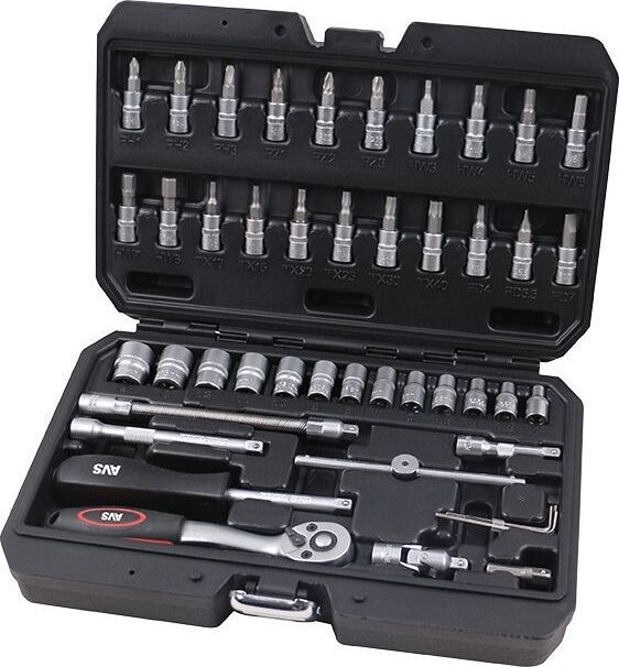 Набор инструмента оснащен прочными и надежными изделиями, которые подойдут для ремонта дома, на даче и для обслуживания вашего автомобиля. Комплект состоит из 46 предметов, упакованных в кейс для надежного хранения и безопасной транспортировки. Рабочие части инструментов выполнены из хромованадиевой стали и обладают комфортными для удержания рукоятками. Материал – хромованадиевая сталь (CrV). Соответствует стандарту DIN. Сатиновое покрытие. Длина: 27 см Ширина: 17,6 см Высота: 5,4 см Вес: 1,4 кг