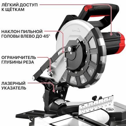 Мощность (Вт): 1400 Диаметр диска (мм): 210 Число оборотов (об/мин): 4900 Параметры пропила 0°/90° (мм): 60х115 Параметры пропила 0°/45° (мм): 25х80 Параметры пропила 45°/45° (мм): 25х80 Параметры пропила 45°/0° (мм): 25х115 Поворот станины влево/вправо (°/°): 45/45 Наклон пильной головы влево/вправо (°/°): 45/0