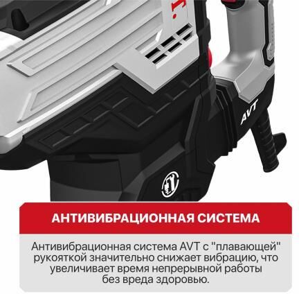 Тип патрона: SDS-MAX Мощность (Вт): 1700 Напряжение (В): 220 Частота ударов (уд/мин): 200 - 2100 Энергия удара (Дж): 45 Регулировка частоты и энергии удара: электронная Расположение двигателя: вертикальное Фиксация включённого состояния: да Регулировка положения зубила: да Количество положений зубила: 12 Антивибрационная система: AVT Регулировка доп. рукоятки: 360° Обрезиненный кабель питания: да