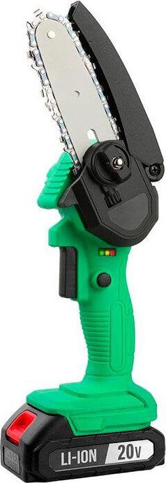 Напряжение АКБ: 20 В Емкость АКБ: 2000 мАч Длина шины: 4 дюйма Скорость вращения цепи: 9.5 м/с Ширина паза: 1.1 мм Шаг цепи: 1/4 дюйма Тип двигателя: щеточный Комплектация: Пила (шина и цепь установлены) - 1 шт АКБ - 1 шт Зарядное устройство - 1 шт Масленка - 1 шт Руководство по эксплуатации - 1 шт
