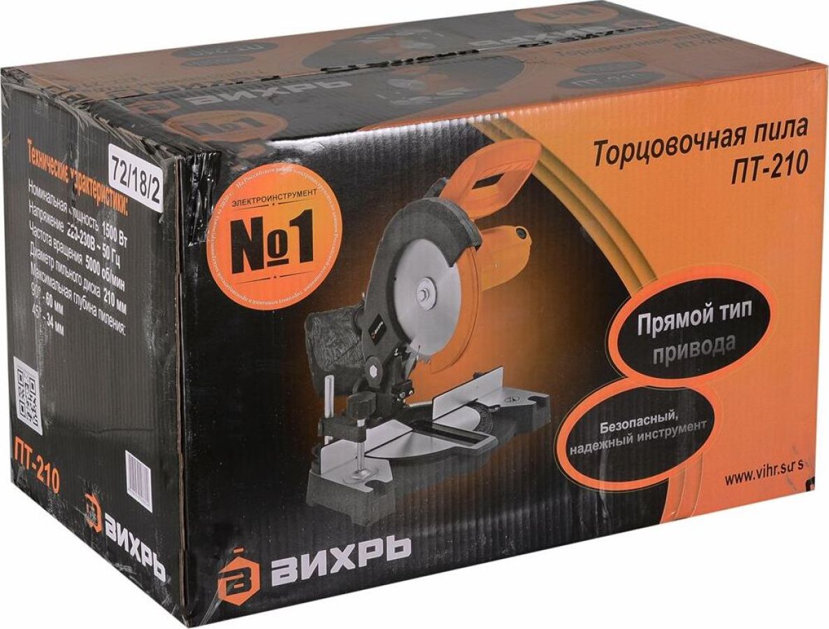 ВИХРЬ ПТ-210 Торцовочная пила диаметр диска: 210 мм глубина пропила 90°: 60 мм ширина пропила 90°: 120 мм особенности конструкции: возможность подключения пылесоса, пылесборник скорость вращения: 5000 об/мин диаметр посадочного отверстия: 30 мм угол наклона: 45° угол поворота: 45° вес: 12.63 кг