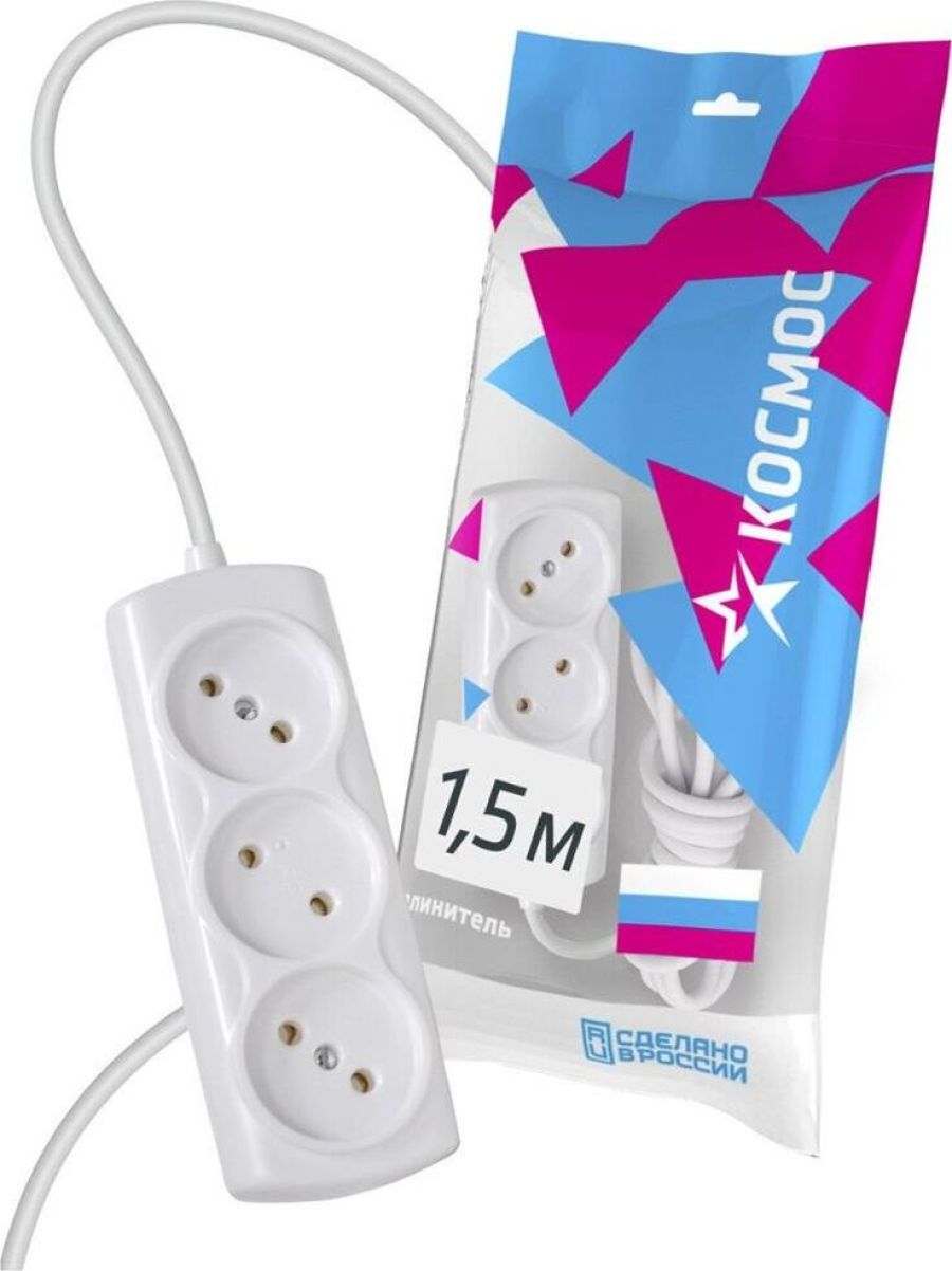 Удлинитель КОСМОС 6А 3 гн ПВС 2*0,75 (1,5м) до 1300Вт Россия