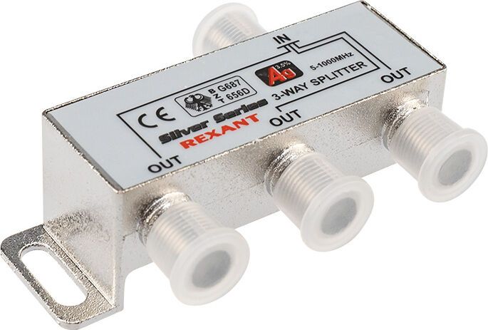 Телевизионный делитель или сплиттер предназначен для телевизионных систем и используется в домах и квартирах, где требуется подключить несколько телевизионных аппаратов к одной антенне. Сплиттер распределяет поступающий на вход сигнал поровну на его выходы, что обеспечивает одинаково четкое изображение на всех подключенных устройствах. Он имеет три выхода для сигнала и подключается с помощью стандартных F-разъемов. Делитель комплектуется необходимыми F-разъемами. Пайка внутри делителя осуществляется с использованием серебросодержащего припоя, что позволяет получить сигнал высокого качества и увеличить надежность. Делитель имеет надежный металлический корпус. Полная комплектация ТВ сплиттера (F-разъемы в комплекте) позволяет удобно и быстро монтировать телевизионный кабель и подключать аппаратуру. Данный делитель подходит для сигналов с частотой 5-1000 МГц, что соответствует стандартному эфирному телевидению.