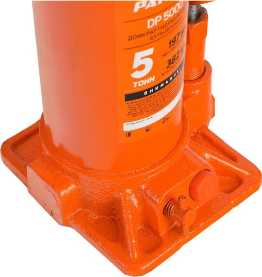 Домкрат гидравлический бутылочный DB 5000 5 T применяется при ремонте и обслуживании легковых автомобилей. Широкое опорное основание позволяет использовать домкрат на любой поверхности, включая мягкий грунт.