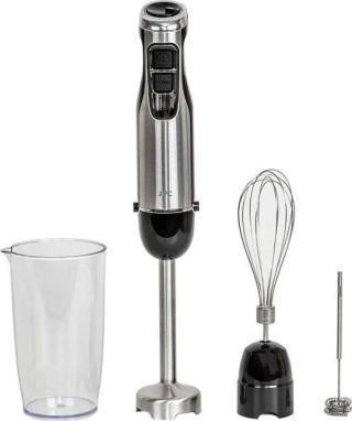 Блендер. Номинальная потребляемая мощность: 250Вт. Максимальная мощность: 1000 Вт. LED индикация. 2 скоростных режима. Функция«ТУРБО» (максимальное увеличение скорости). Плавная регулировка скорости. Ножка блендера из нержавеющей стали. SafeEdge - защита от царапин. Надёжная фиксация. Насадка блендер с 4-х лопастным титановым ножом. 3 ОСНОВНЫЕ ФУНКЦИИ: Измельчение. Смешивание. Взбивание. КОМПЛЕКТАЦИЯ: Мерный стакан для смешивания с крышкой (объём 0,8 л). Чаша для измельчения (объём 0,5 л). Нож для измельчения. Венчик для взбивания.