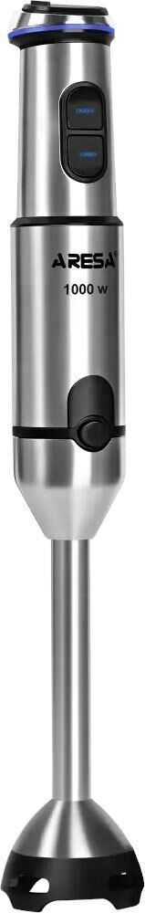 Блендер. Номинальная потребляемая мощность: 250Вт. Максимальная мощность: 1000 Вт. LED индикация. 2 скоростных режима. Функция«ТУРБО» (максимальное увеличение скорости). Плавная регулировка скорости. Ножка блендера из нержавеющей стали. SafeEdge - защита от царапин. Надёжная фиксация. Насадка блендер с 4-х лопастным титановым ножом. 2 ОСНОВНЫЕ ФУНКЦИИ: Измельчение. Смешивание.