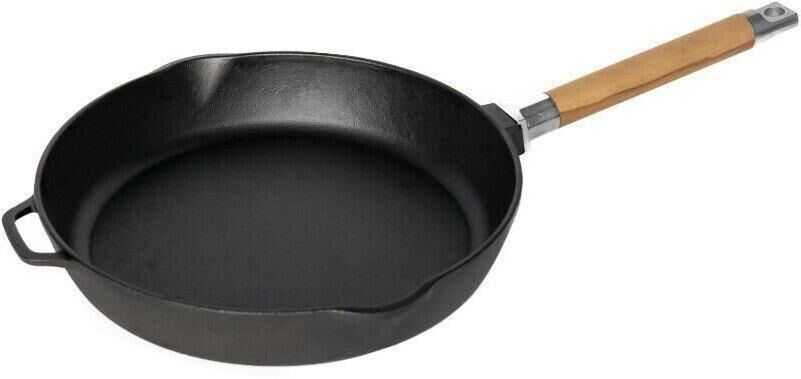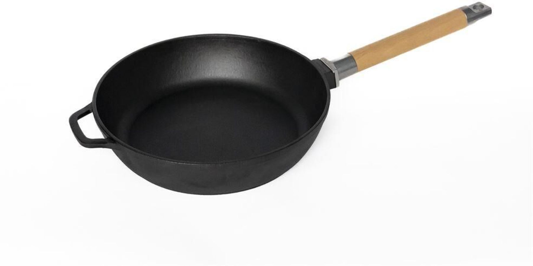Готовить в чугунной сковороде — просто, полезно и невероятно вкусно. Она дарит прекрасные мгновения готовки и пищу, которая равномерно прожарена со всех сторон. Теплопроводность чугуна отлично подходит для приготовления тех блюд, где не нужны резкие перепады температуры. Чугунная посуда Гардарика предназначена для любых видов плит и любых варочных поверхностей, в том числе и на открытом огне. Сковорода изготовлена из натурального экологически безопасного чугуна.