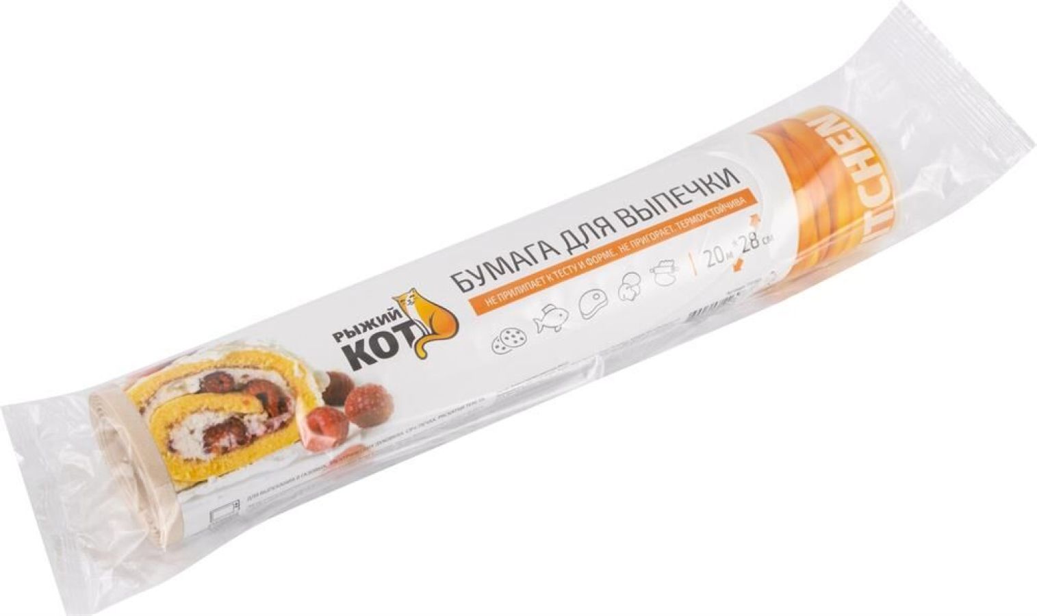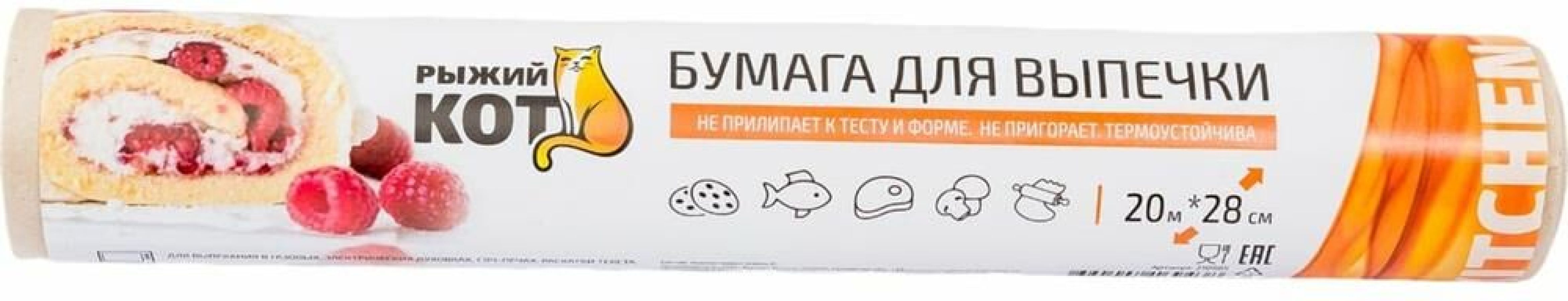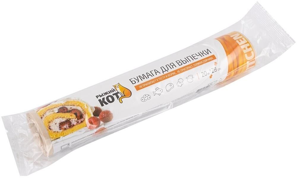 Комплектация: 20м*28см, подпергамент, Бумага для выпечки Рыжий кот, в ПВХ упаковке , Срок годности: 10 лет