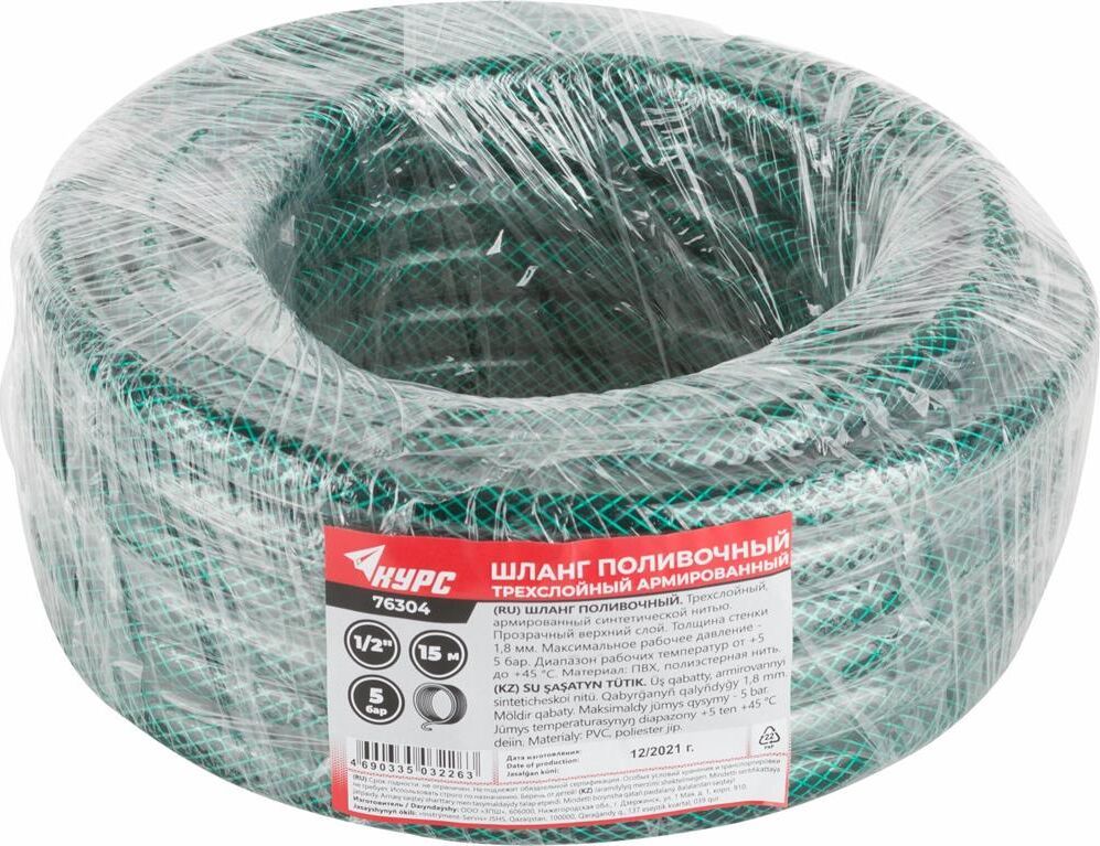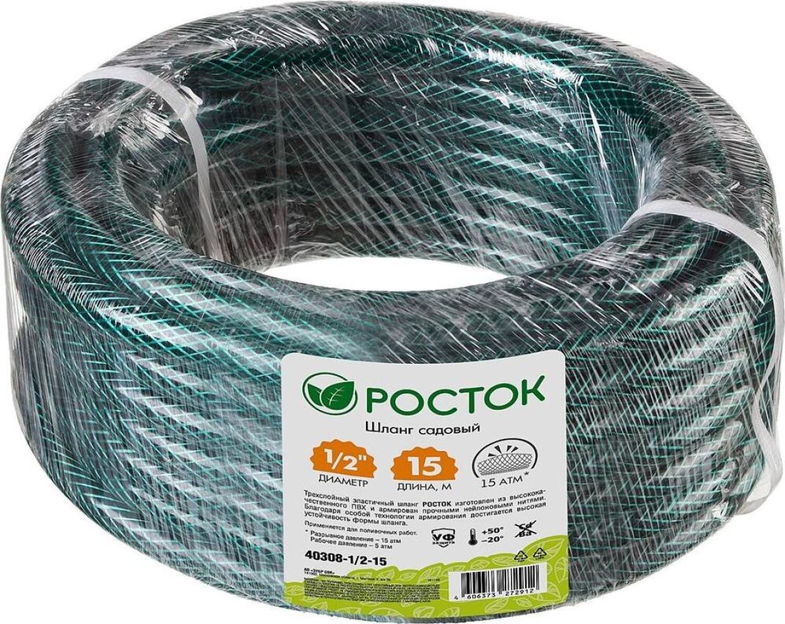 Диаметр, дюйм: 1/2 Длина, м: 15 Max давление, бар: 15 Тип: армированный Армирование: диагональное Допустимый перепад температуры, °С: от -20 до +50 Количество слоев: 3 Материал изделия: ПВХ
