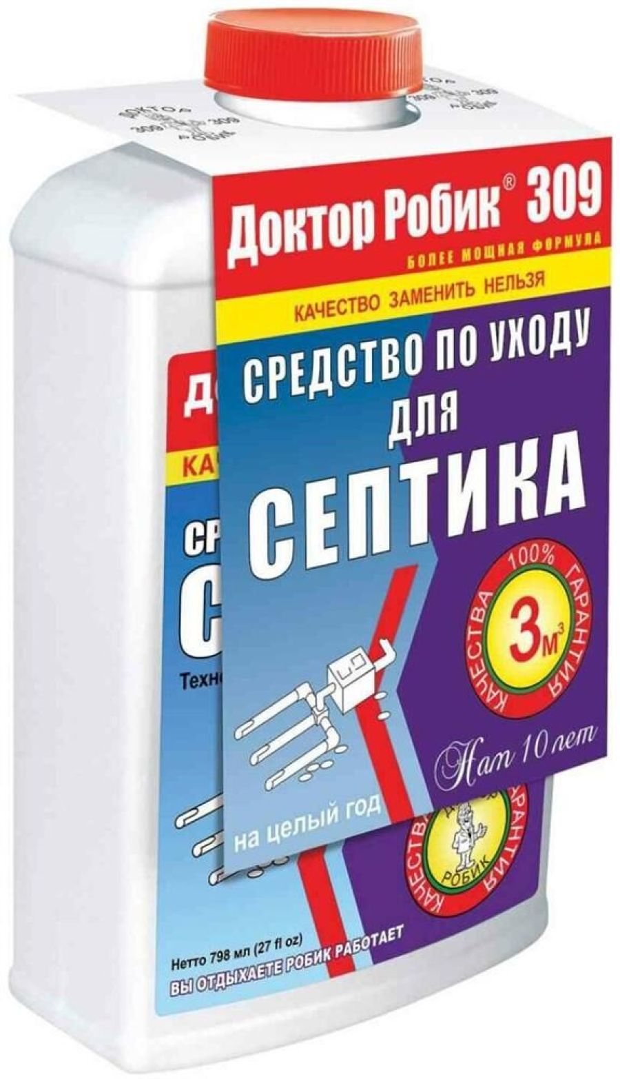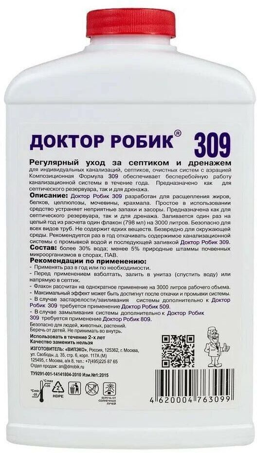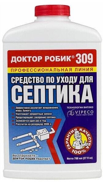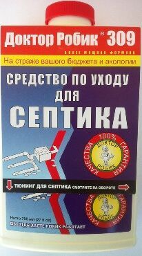 Разработан для расщепления жиров, белков, целлюлозы, мочевины и т.д. Устраняет неприятные запахи и засоры. Предназначено как для септического резервуара, так и для дренажа. Заливается один раз на целый год из расчёта один флакон на 2000 литров.