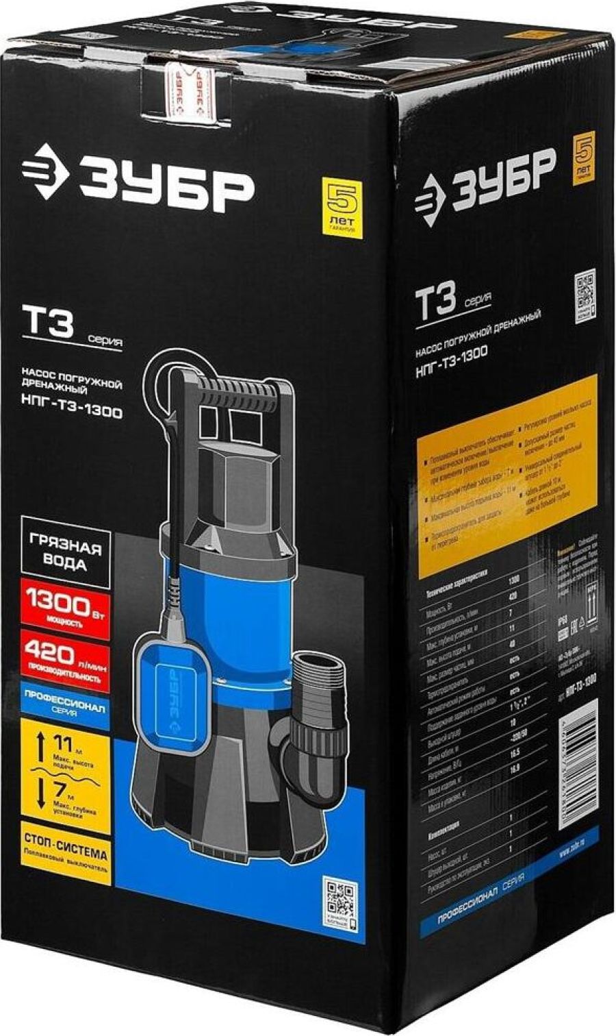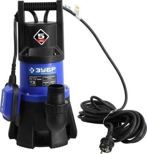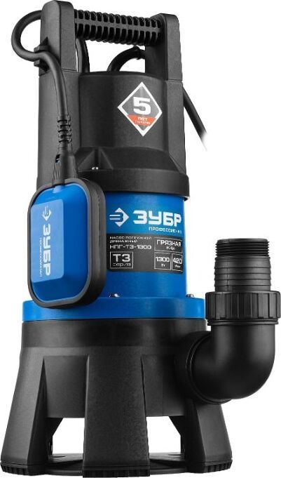 Вес 7,6. Высота подъема, м 11. Габариты, мм 250х240х500. Глубина погружения, м 7. Мощность, Вт 1300. Производительность, л/мин 420. Тип дренажный для грязной воды. Длина кабеля, м 10. Вид погружной. Защита от сухого хода поплавковый выключатель. Мах температура жидкости, °С 35. Остаточный уровень воды, мм 60. Соединитель в комплекте внешняя G1 1/2; елочка 2. Давление, атм 1.1. Допустимая температура жидкости, °С +35°C. Класс защиты IP68. Напряжение, В 220. Материал корпуса пластик. Допустимый диаметр твердых частиц, мм 40. Серия Т3. Конструкция центробежный.