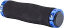 Грипсы XH-GN02BL, длина 130 мм, двухсторонняя фиксация при помощи винтов, материал EVA черный, с синими алюминевыми кольцами
